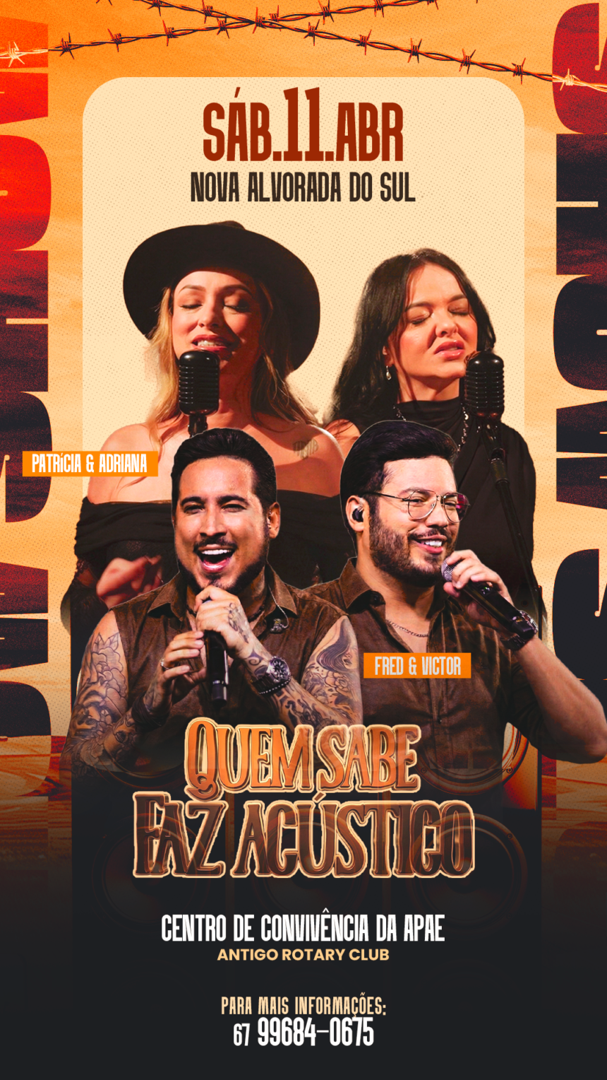 Nova Alvorada do Sul receberá, no dia 11 de abril, o evento musical “Quem Sabe Faz – Acústico”, que promete reunir público e artistas em uma noite marcada por música, entretenimento e um ambiente preparado para proporcionar uma experiência diferenciada aos participantes.