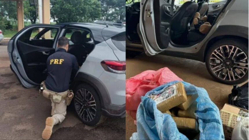 De acordo com a PRF, a condutora dirigia um veículo modelo Pulse Abarth e estava acompanhada de duas crianças e de um homem. Durante a abordagem e vistoria no automóvel, os policiais localizaram diversos tabletes de drogas escondidos no interior do veículo.